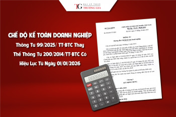 Ngày 27/10/2025, Bộ Tài Chính đã ban hành Thông tư 99/2025/TT-BTC hướng dẫn chế độ kế toán doanh nghiệp. Có hiệu lực thi hành kể từ ngày 01/01/2026 và áp dụng cho năm tài chính bắt đầu từ hoặc sau ngày 01/01/2026.