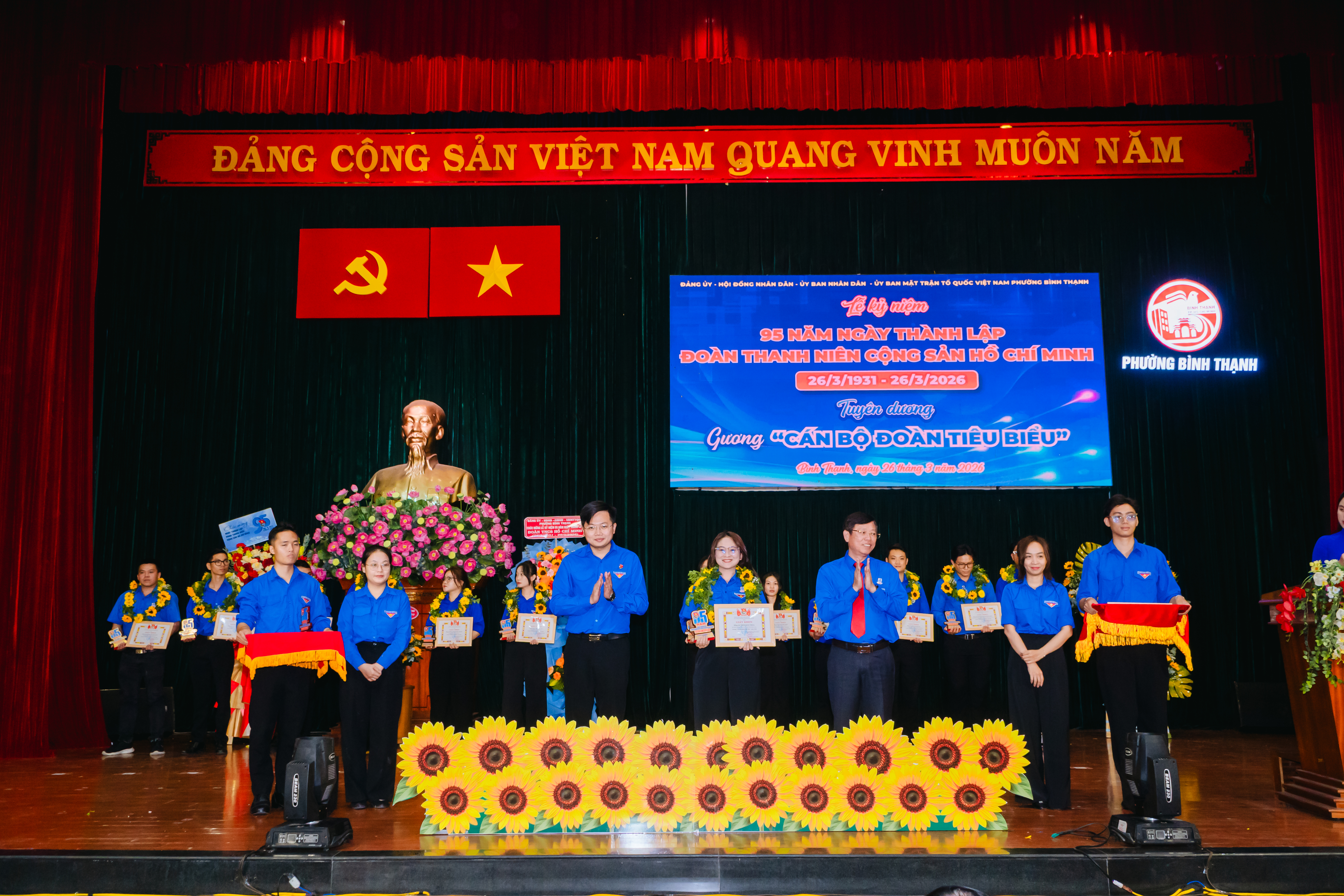 Ngày 26/03/2026, tại Trụ sở UBND phường Bình Thạnh đã diễn ra chương trình Lễ kỷ niệm 95 năm ngày thành lập Đoàn TNCS Hồ Chí Minh và tuyên dương các gương “Cán bộ Đoàn tiêu biểu” trong không khí trang trọng và đầy tự hào, quy tụ nhiều cá nhân xuất sắc trong công tác Đoàn trên địa bàn.